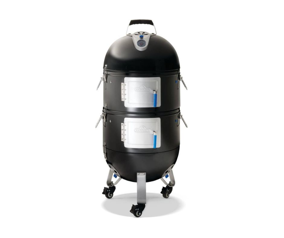 VERSATILE WITH LARGE COOKING CAPACITY: Includes water pan, charcoal basket, 2 cooking grids, and 5 stainless steel “S” hooks for optimal smoking