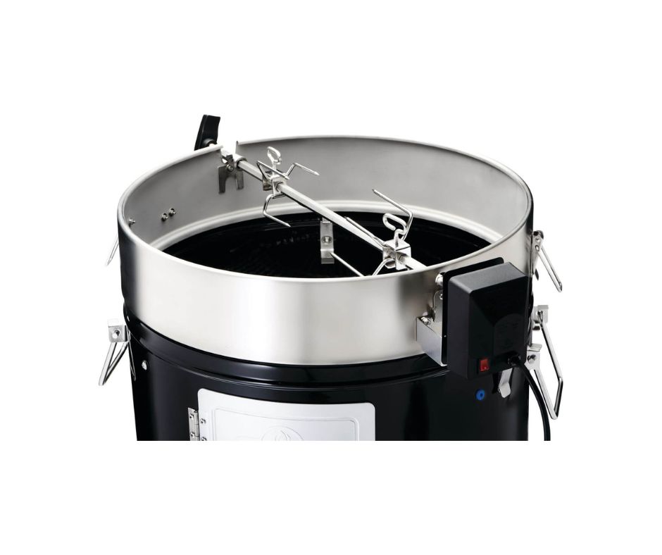 DURABL STAINLESS STEEL ROTISSERIE RING: Ready for seamless motor and spit mounting, so you can rotate meats effortlessly for even cooking. *Rotisserie attachment sold separately
