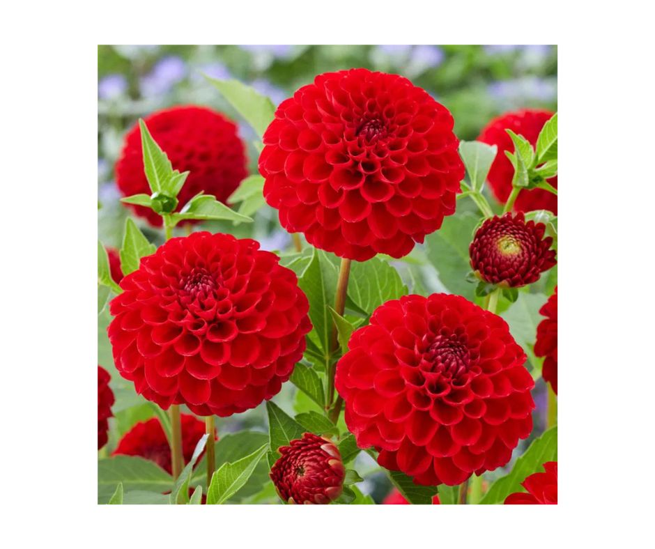 Dahlia Pompon ‘Nescio’ is a meticulously engineered marvel of the garden, famous for its perfectly symmetrical, globe-shaped blooms in a deep, saturated shade of vibrant scarlet-red. Each flower is a masterpiece of natural geometry, composed of neatly cupped, honeycomb-like petals that curve inwards to form a solid, tactile sphere. Set against lush, dark green foliage, the brilliant red of ‘Nescio’ appears even more intense, offering a sharp, clean aesthetic that is both classic and modern. This variety is a perennial favourite for exhibitors and designers alike, prized for its exceptional flower count and its ability to maintain its flawless shape and fiery colour from mid-summer right through the first frosts.