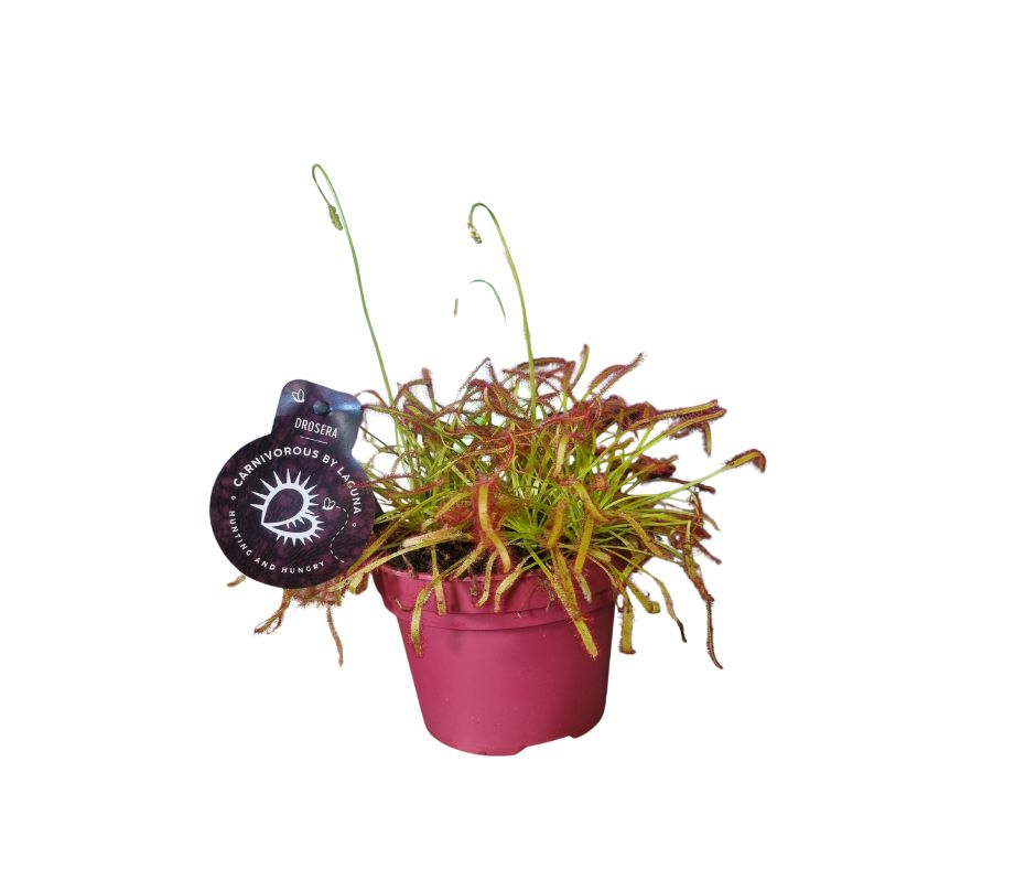 The carnivorous Drosera takes its name from the Greek word ‘drosos’, meaning dew. A substance that resembles dew adheres to the little hairs on the plant’s leaves. The Drosera uses this to catch mosquitoes, which stick to the leaves. When the mosquito has nowhere else to go, the leaf envelops the entire prey. The plant is found worldwide, including in the Netherlands. It is also